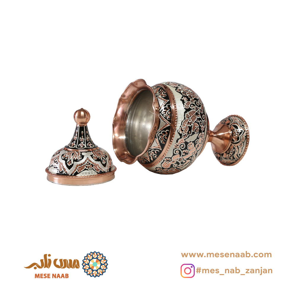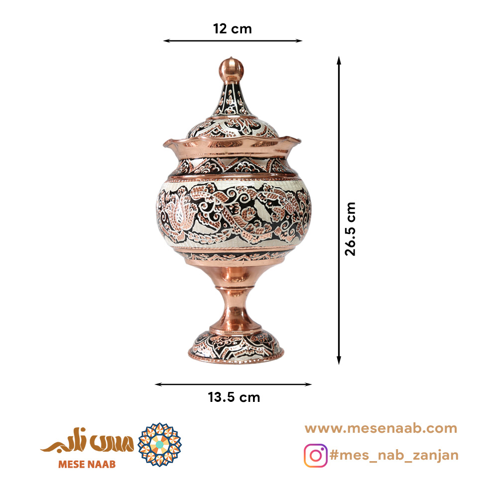 اگر بهدنبال ظرفی خاص، هنری و کاربردی برای پذیرایی یا هدیه هستید، شکلاتخوری توپی پایهدار نقرهکوب الماستراش انتخابی بینظیر است. این محصول فاخر در استان زنجان تولید شده و از مس ناب با خلوص بالا ساخته شده است؛ فلزی اصیل که با نانوکاری چندمرحلهای، سیاهقلمکاری دستی، آبکاری نقره باکیفیت و الماستراش هنرمندانه به سطحی درخشان، مقاوم و لوکس دست یافته است.