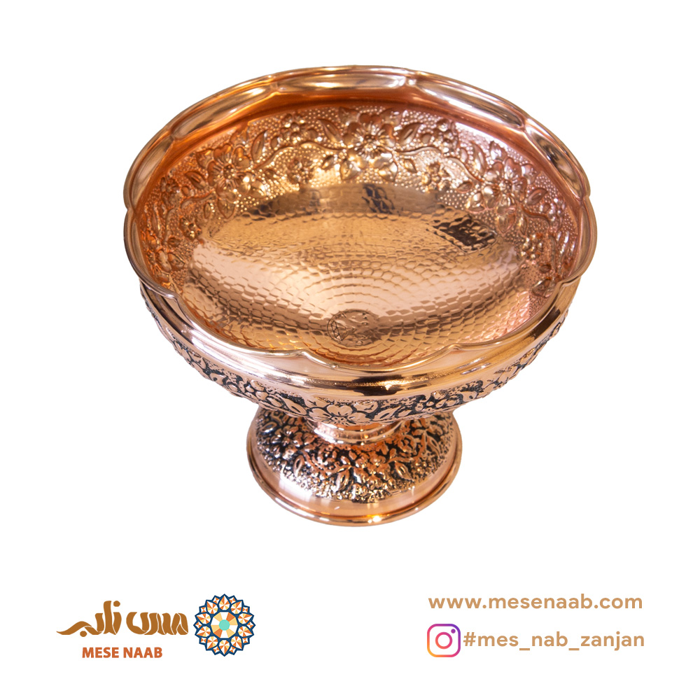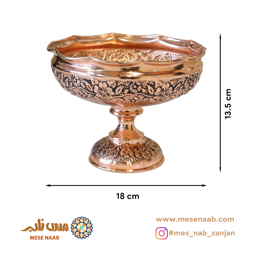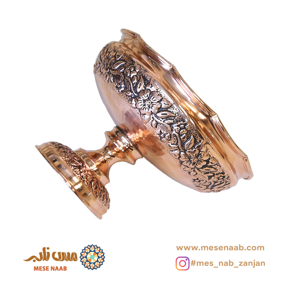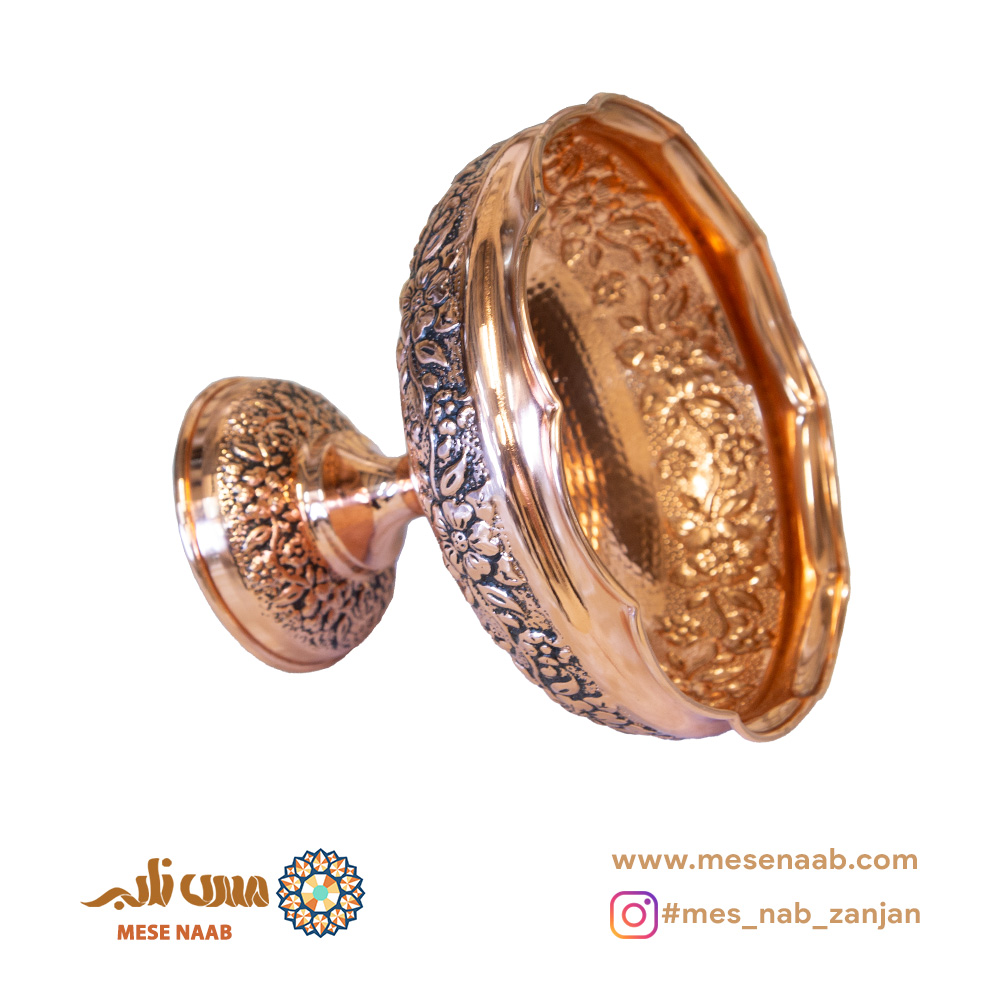 شکلات خوری شرف الشمس نانو، ترکیبی بیمانند از هنر دست و فناوری مدرن است که در استان زنجان، مهد صنایع دستی ایران، ساخته شده است. این محصول با بدنهای از مس ناب و طرحهای گل برجسته نفیس، جلوهای باشکوه به میز پذیرایی شما میبخشد.