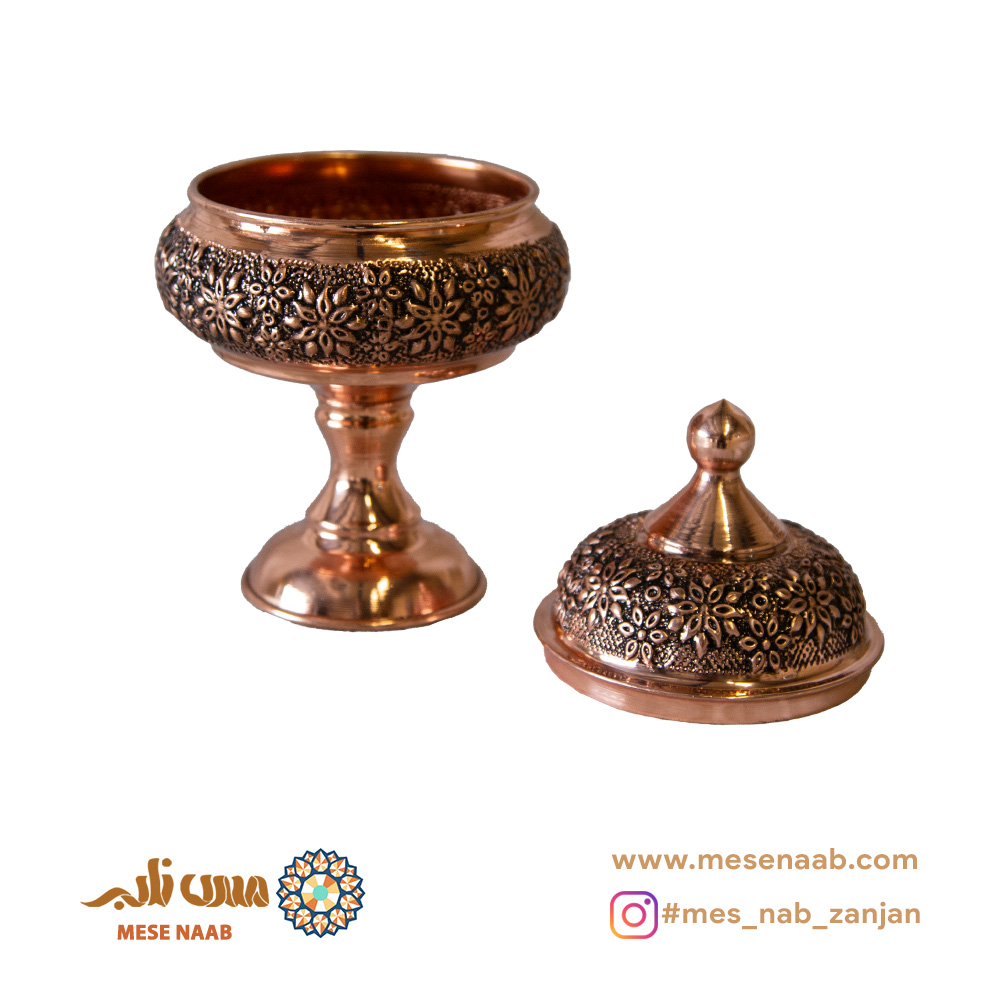 قندان رز شکمی پایه دار نانو، محصولی دست‌ساز از زنجان با بدنه گل‌برجسته سیاه‌قلم و طراحی تک‌پایه است. این قندان درب‌دار با داخل قرمز نانو شده، در فروشگاه مس ناب عرضه می‌شود و به‌دلیل نانو بودن و مقاومت در برابر اکسید شدن، انتخابی ماندگار، شکیل و مناسب برای پذیرایی است.